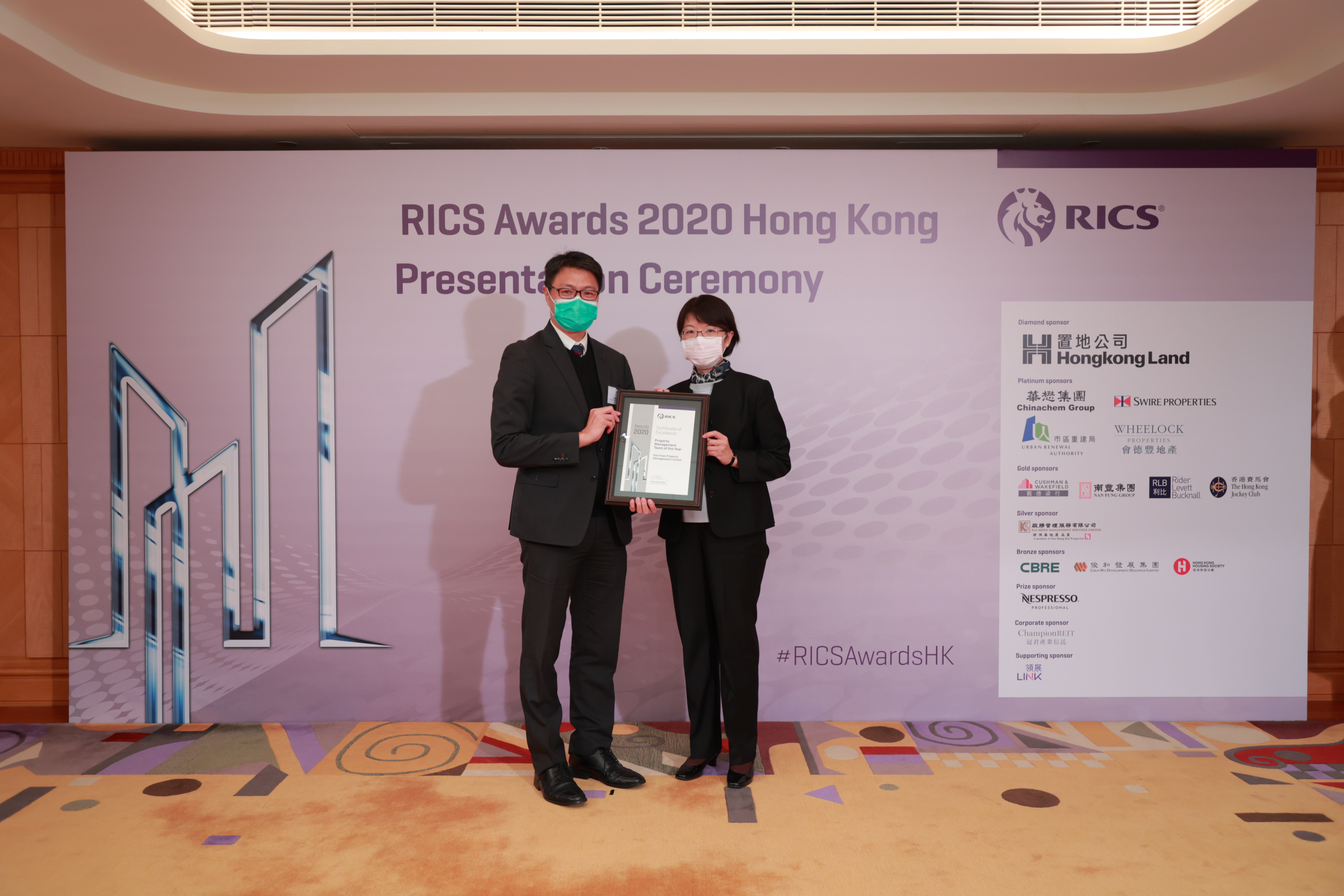 As well, we are honoured to receive “Sustainability Achievement of the Year”, “Residential Team of the Year”; “Construction Project Management Team of the Year”. Harriman Property Management team has also received the “Property Management Team of the Year” in recognition of the continuous efforts in offering excellent service. RICS Awards is the best testament to our performance and capabilities; and we commit to pursue excellence in delivering the highest standard of product and management going forward.