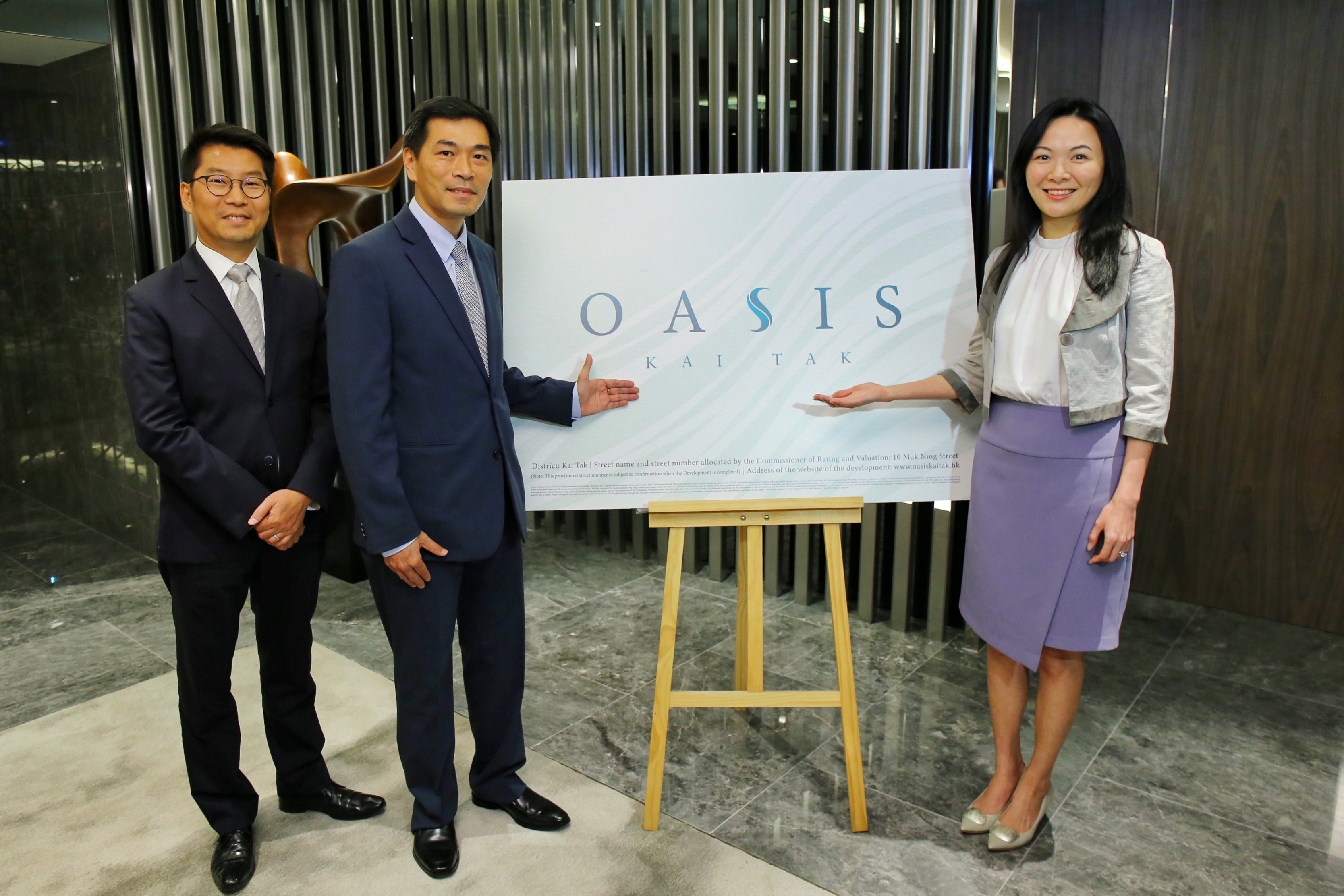 会德丰地产市务助理总经理陈惠慈小姐表示:「项目名字OASIS KAI TAK灵感源自其所在地,启德发展区内绿意盎然的园林网络,区内的休憩及绿化面积高达100公顷,佔整个发展区三分之一5,是香港罕有的城市中的绿洲。配合启德发展区的独特性及项目前临启德河的地利优势,OASIS在设计上同样贯彻城市绿洲的理念,在会所及园林设计上融入水的元素及着重WELLNESS的生活概念6,项目名字OASIS正好反映于城市中的优尚生活态度及追求。另外,OASIS亦尤其着重其园林设计及绿色生活配套,务求为住户建构一个都会绿洲中的尚绿居停。」